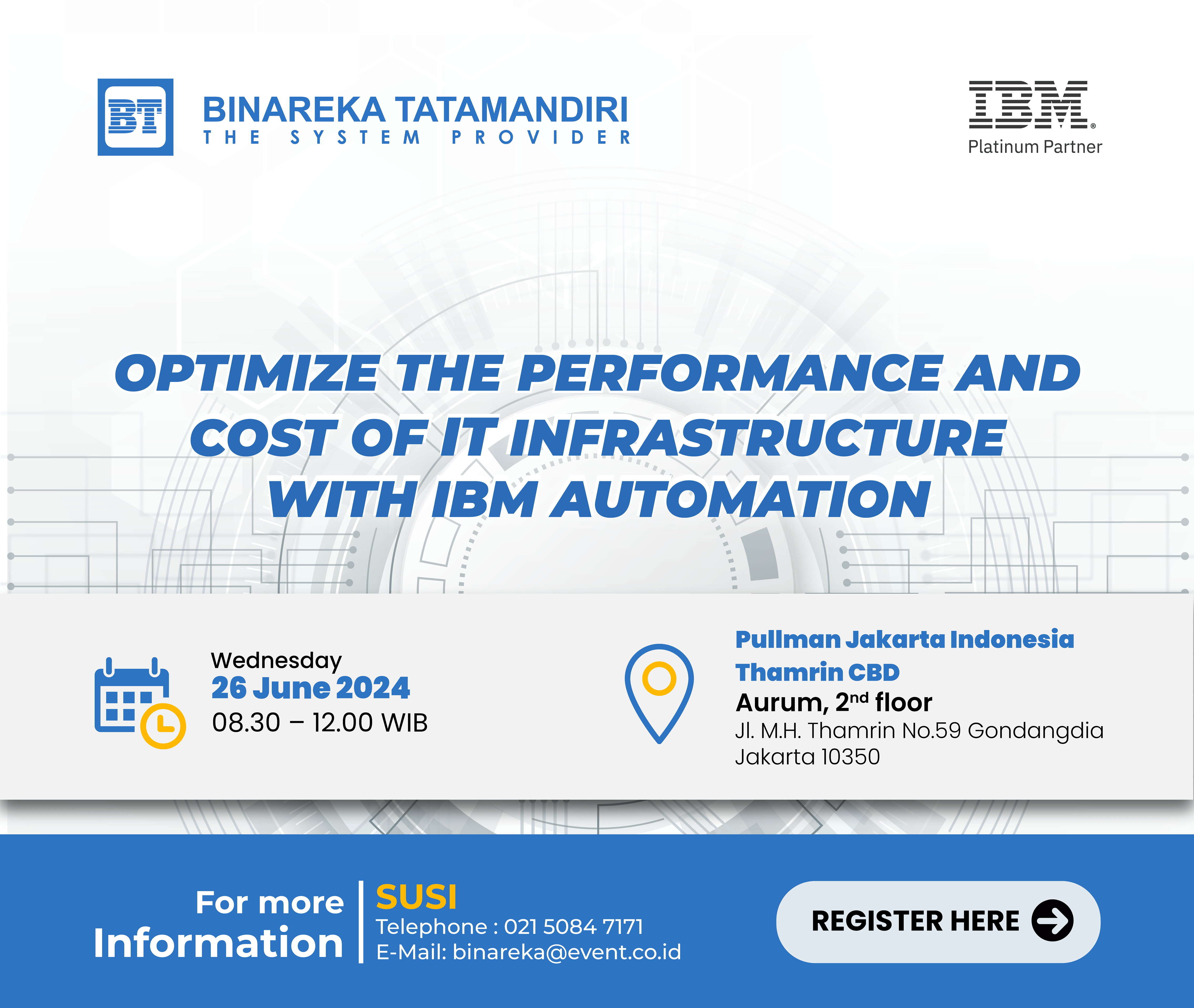 Optimize The Performance and Cost of IT Infrastructure with IBM Automation Jakarta, June 26, 2024 - Binareka Tatamandiri, in collaboration with IBM, successfully hosted the event titled "OPTIMIZE THE [...]